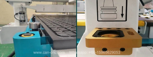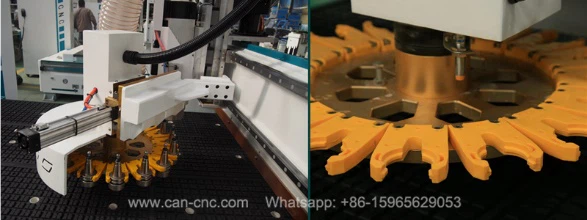 12 Disc tool changer magazine: the disc tool change is with 12 tools, can change the tools automatically, so it can promote the CNC wood router working efficiency.