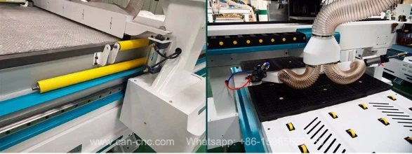 Vacuum worktable: We have three type worktable, T slot and vacuum worktable, T slot and vacuum worktable together. The pictures show you vacuum type worktable. It is more easier to use. You just need to put your material on table, then it is stable without moving, this table saves time and labor cost.