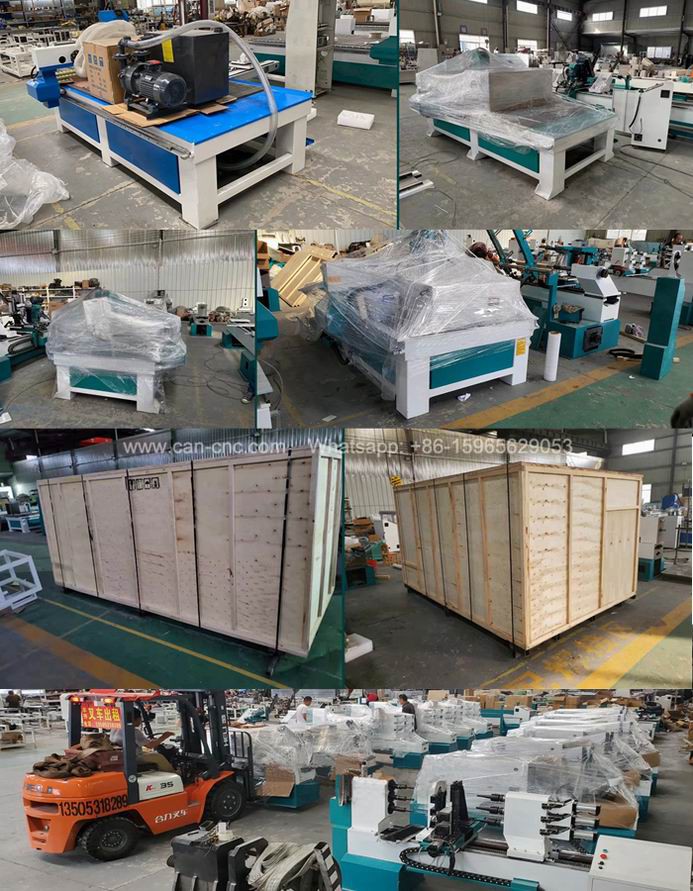 With water-proof package on the cnc wood machine, next to be fixed in the wooden box.