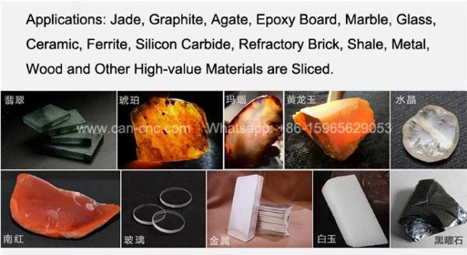 Jade, graphite, agate, epoxy board, marble, glass, ceramics, ferrite, silicon carbide, refractory brick, shale stone, wood and other high-value materials for slicing processing.